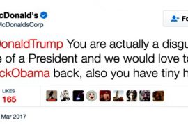 McDonald’s slams U.S. President Donald Trump in Tweet